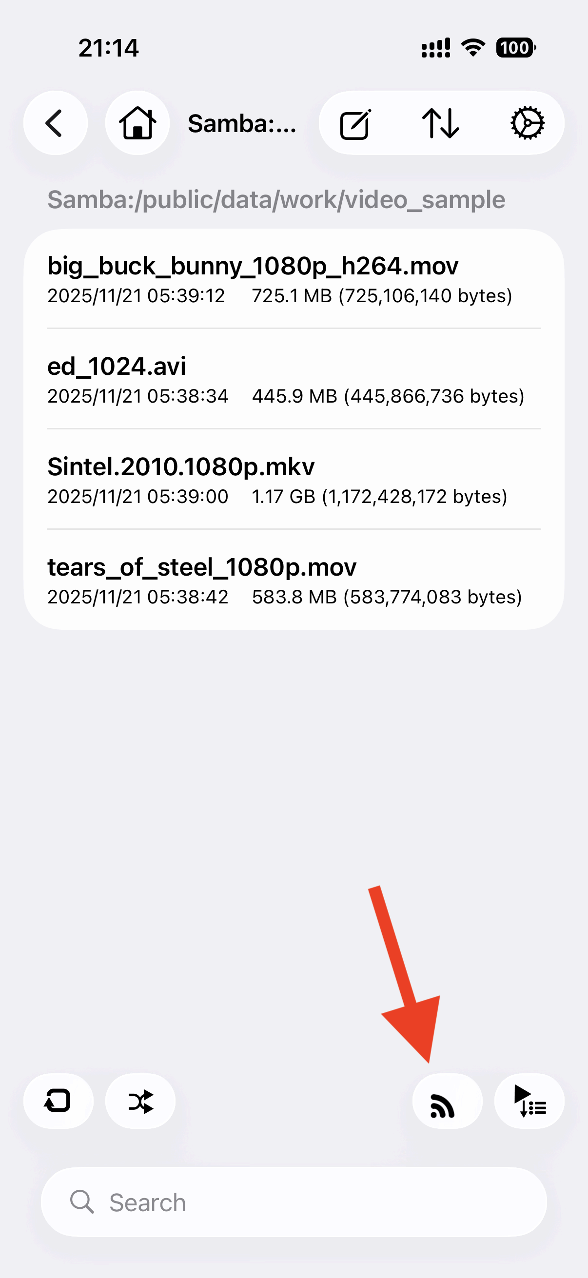 In edit mode, items can be edited. Upload and Download, make new folder, rename, modify time, move, delete are available. And also you can unmark the played items, you can send items to playlist.