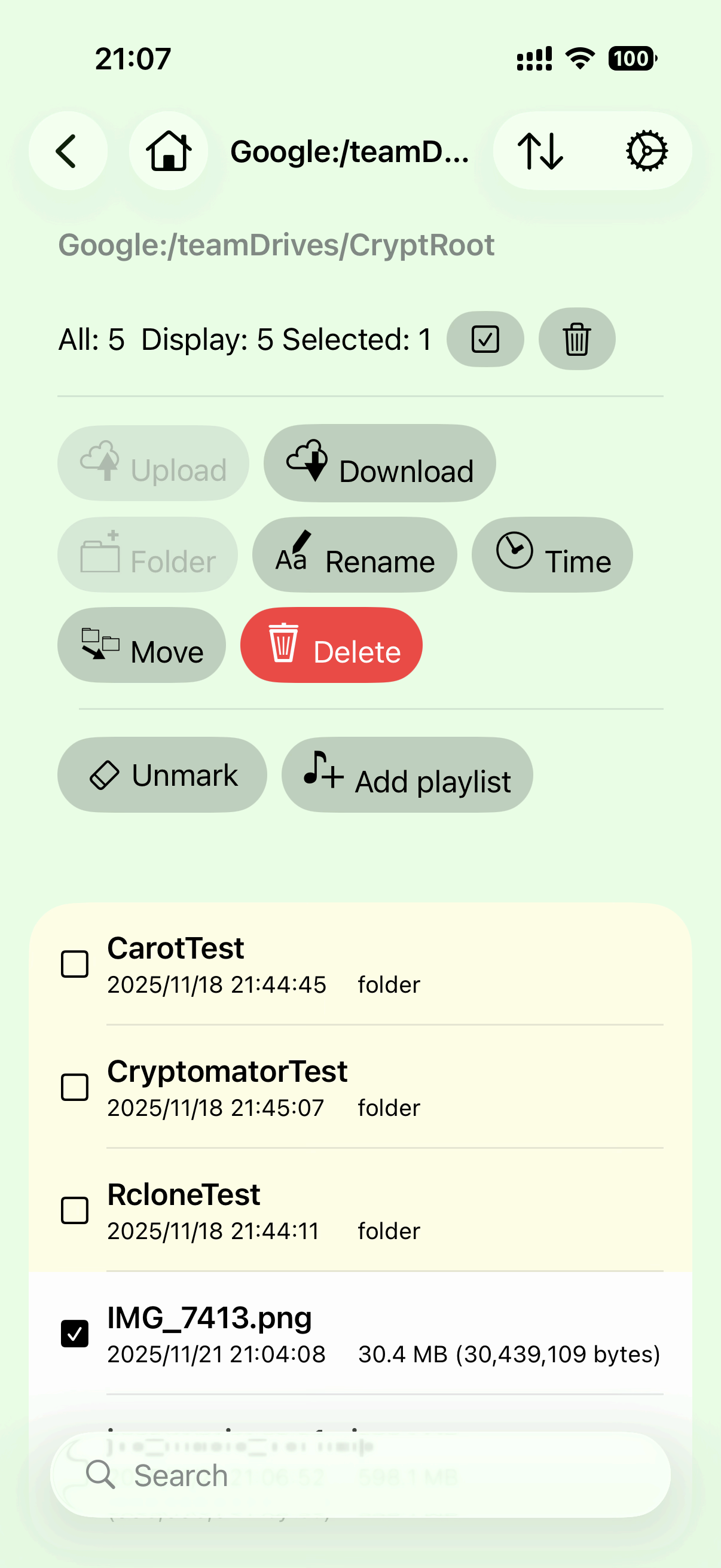 This app can play media files with keeping encrypted. In addition, this app can play non-native media files (ex. mpeg2) with software decoder. You can edit your cloud storages: upload, make folder, rename, move, delete items. Also this app supports Chromecast, can send media to a device with encoding in app.