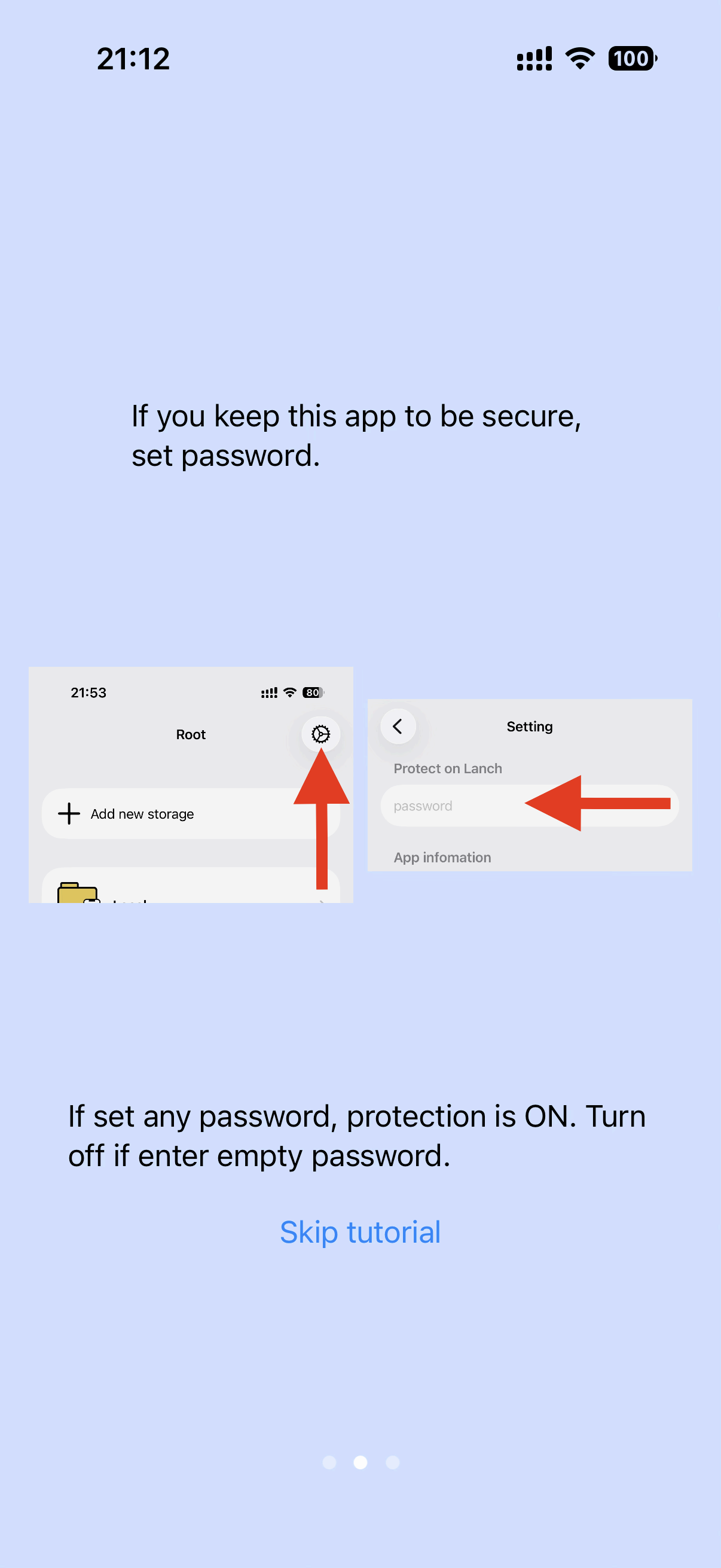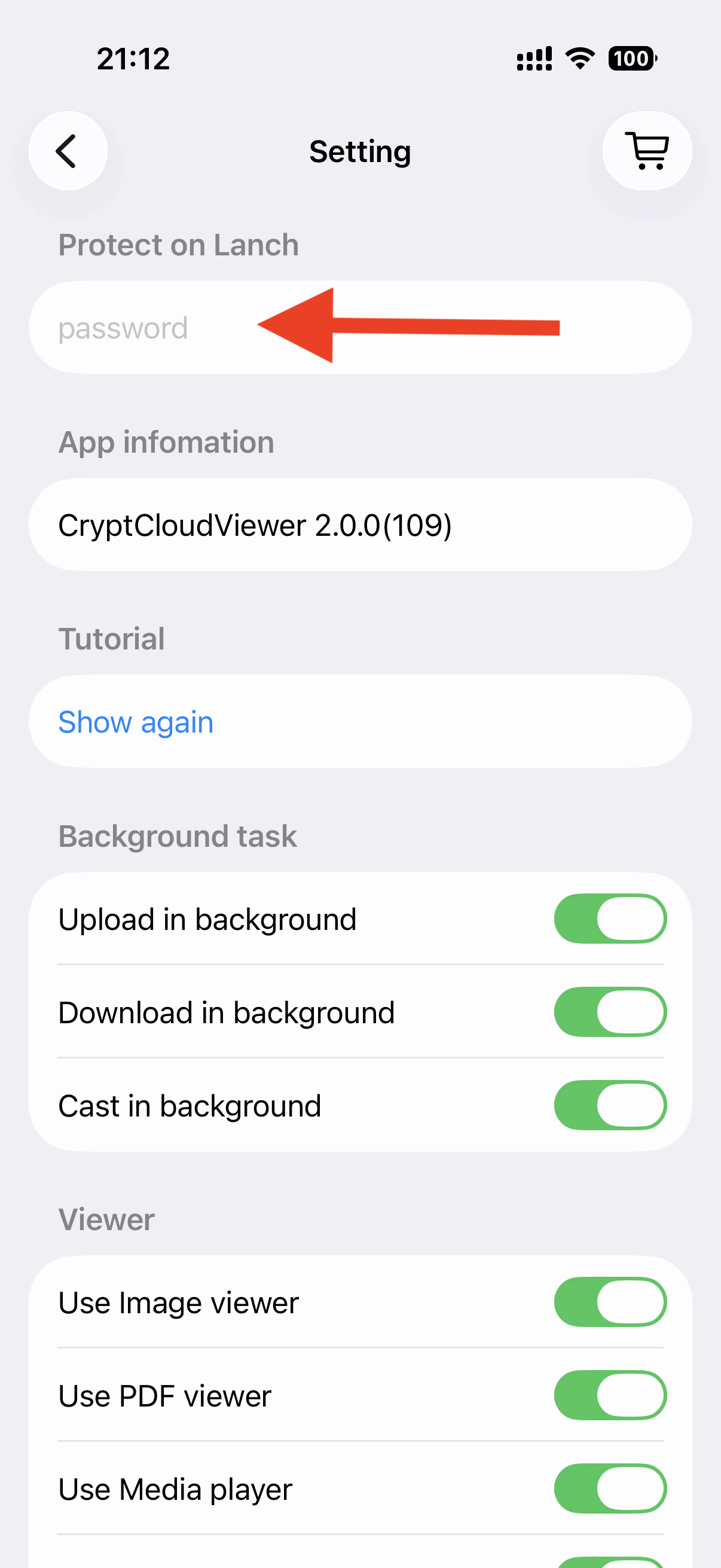 This app can be protected on launch by password and Touch ID/Face ID. If you enter any password in 'Settings', the protection is ON. Set empty password and the protection is OFF in next launch. No protection in task switch for convenience. If you want protect immidiately, tap top left button in root view to lock.