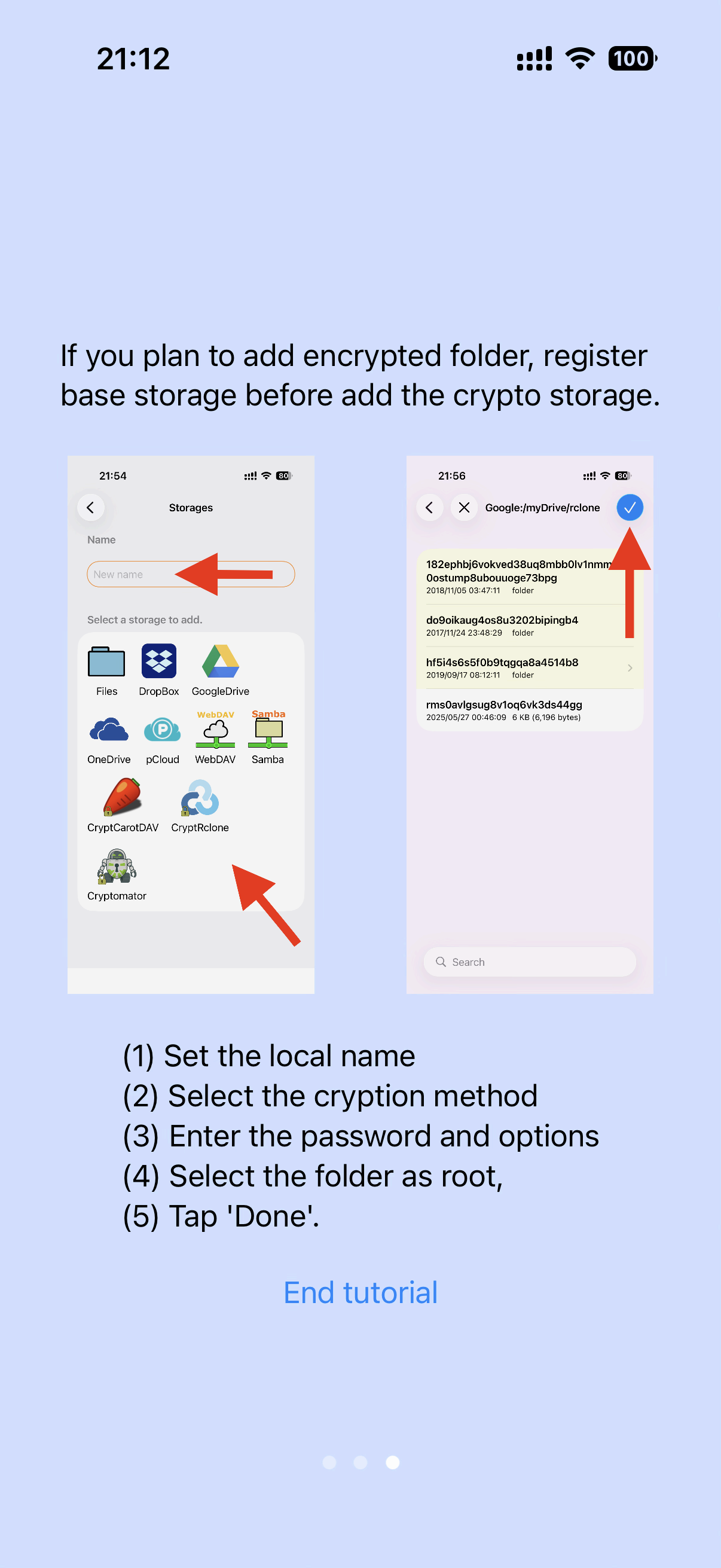 First, select a cloud storate and login. If you want add encrypted storage, add storage including encrypted folder in advance.