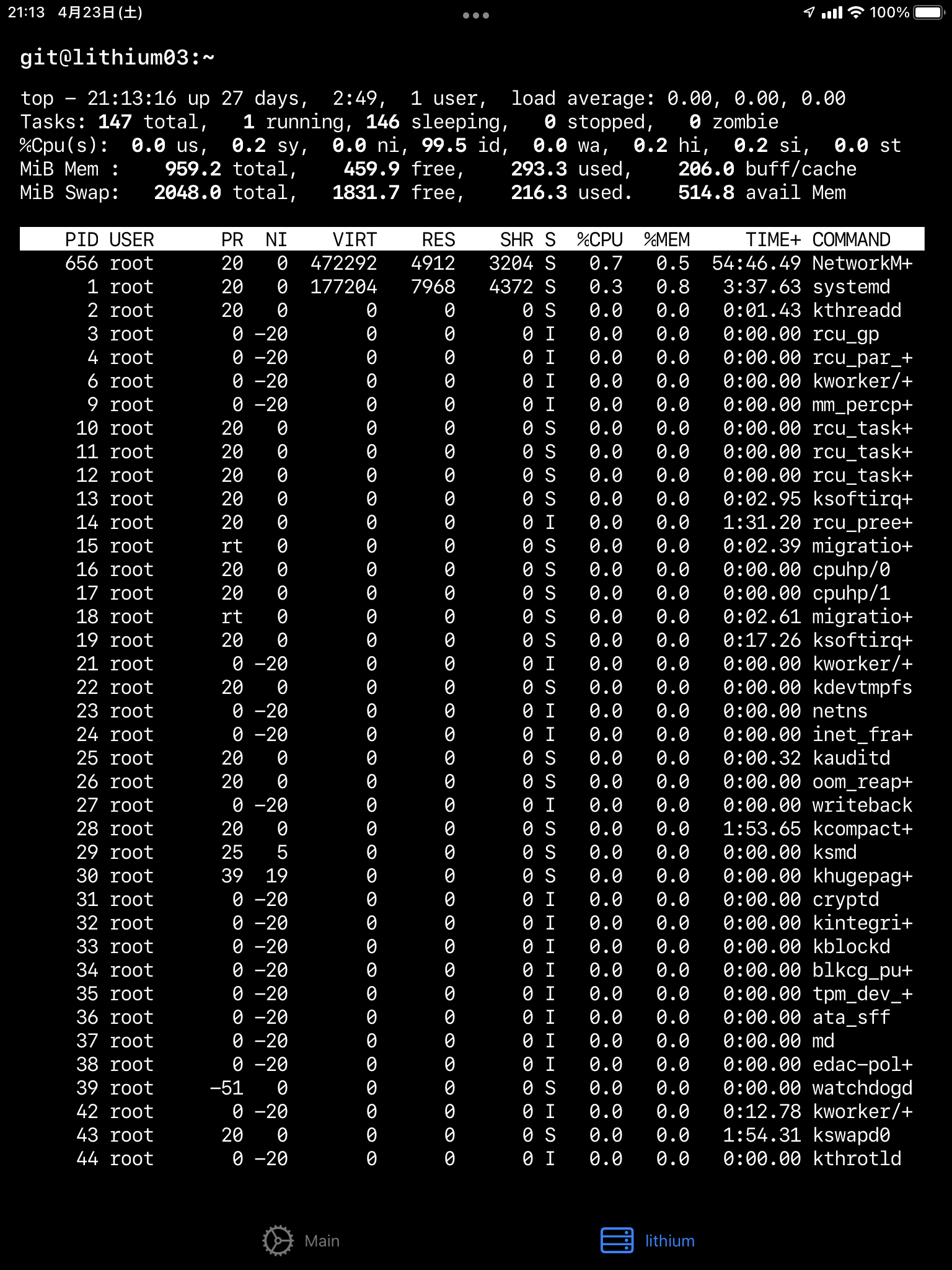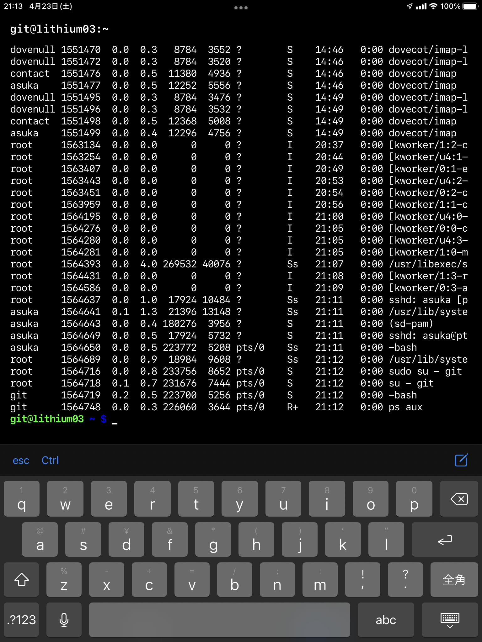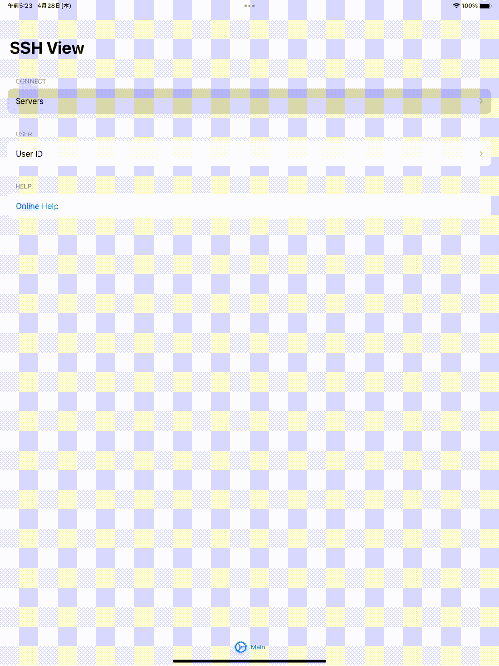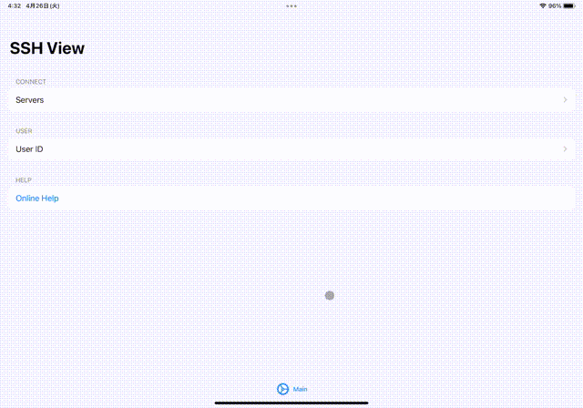 リストからタップすると、SSH接続が始まります。