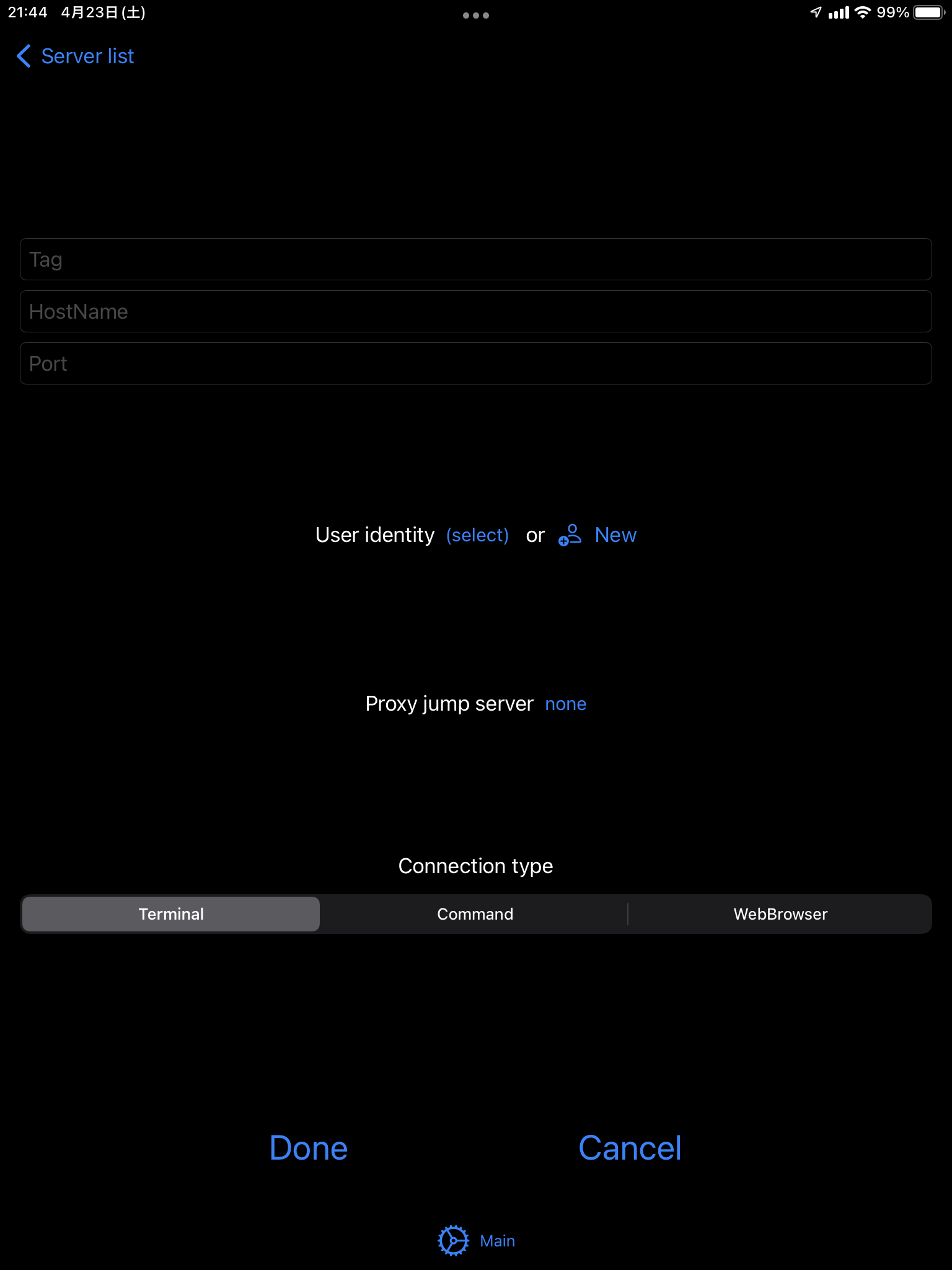 SSH接続にProxy jumpを使用できます。最初に proxy のサーバーを追加し、次にメインのサーバーを追加します。 サーバー情報のページで。Proxy jump server を選択するところで、proxyとなるサーバーエントリを指定します。 proxyをセットすると、SSH接続は、先にproxyサーバーへSSH接続し、トンネルを通じてメインサーバーへの接続を行います。