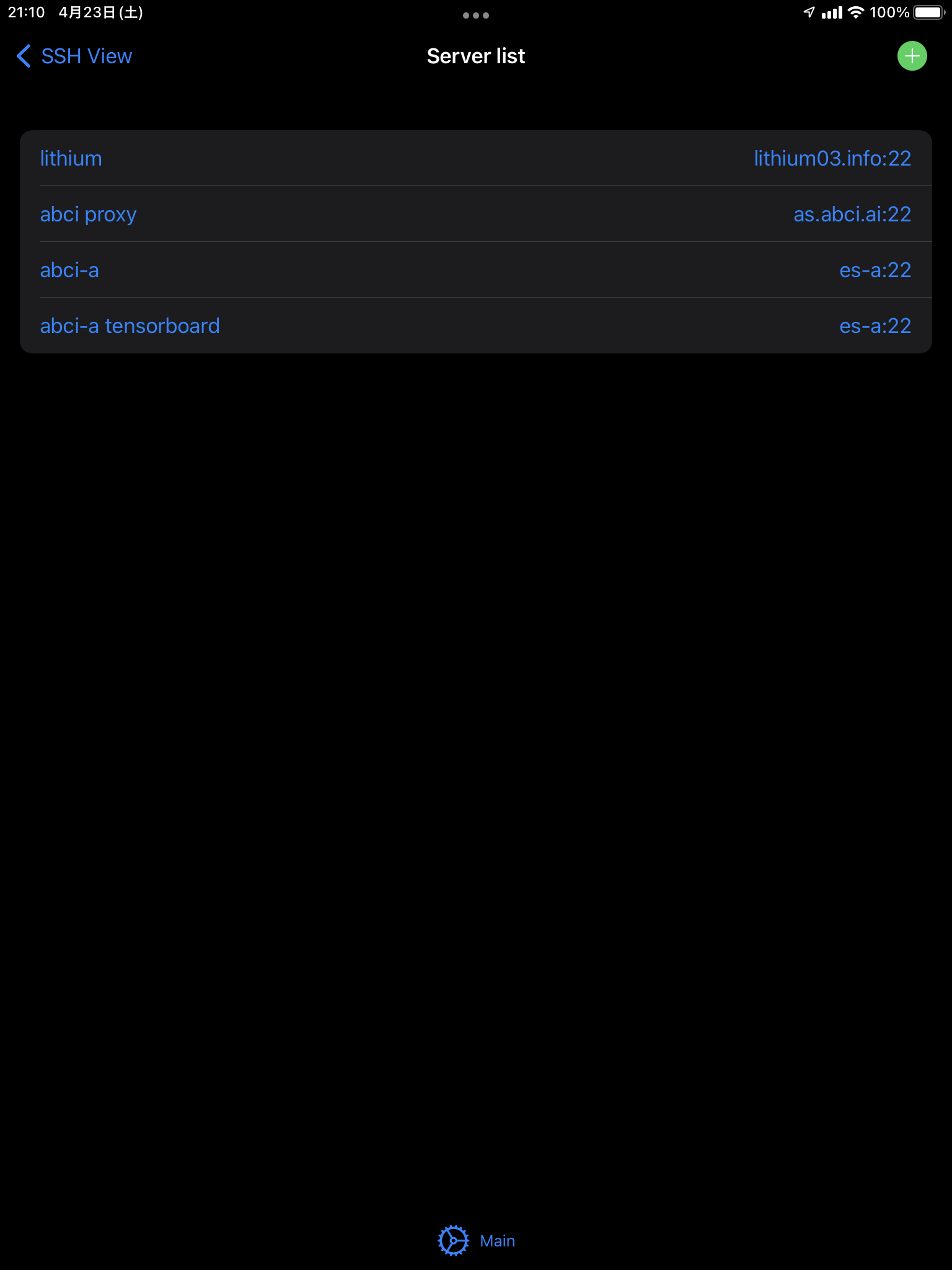 次に、サーバーを追加します。 アプリのトップを開き、"Servers"をアップして、右上の + ボタンから追加します。