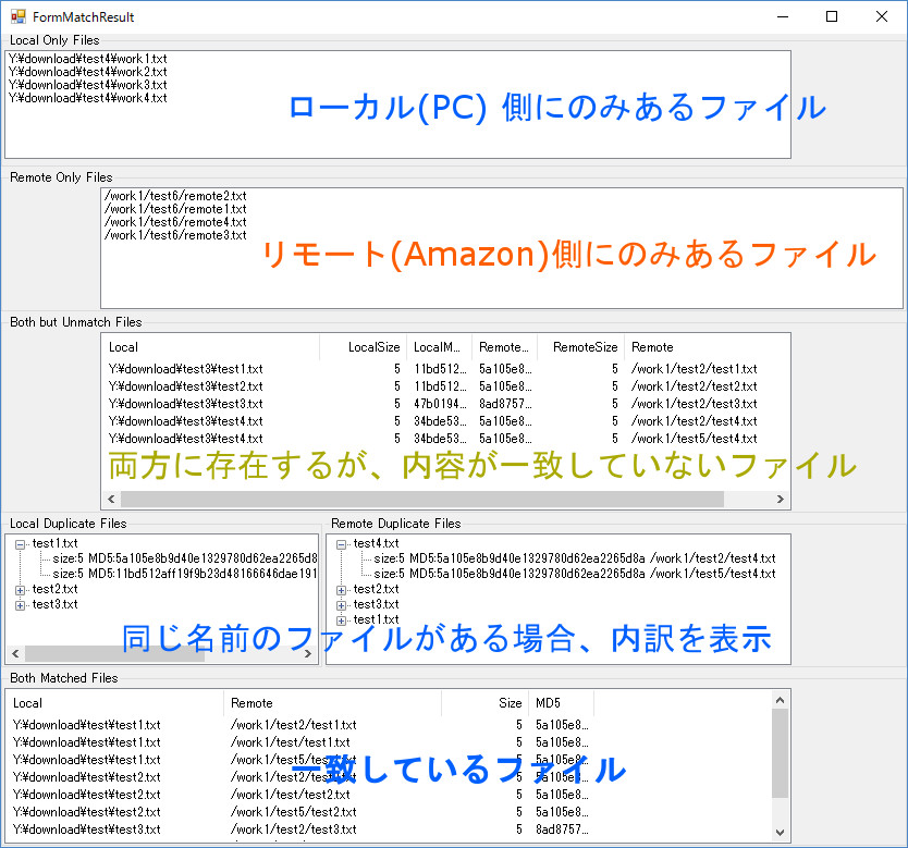check MD5(MD5ハッシュも使う)チェックボックスをオンにすると、その際にファイルのハッシュも比較します。