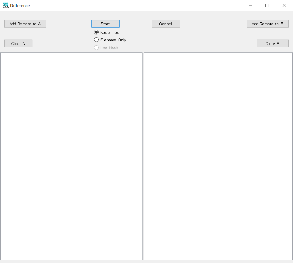 左と右に、比較したいリモートのフォルダをそれぞれ追加して比較を行います。