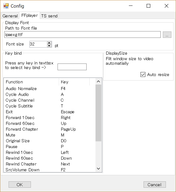 再生ウインドウでのキー入力はデフォルトで以下の通りですが、割当を設定から変えることができます。