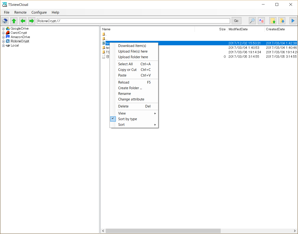 通常のクラウドストレージに接続するのと同様に、File->Connectから、CarotCryptまたはRCloneCryptを選択してください。