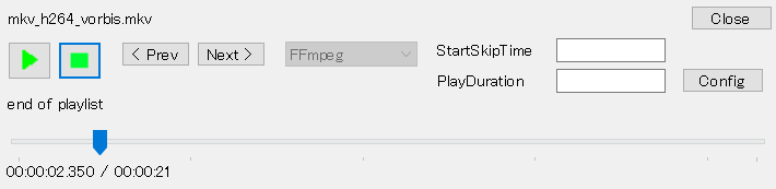 再生ボタンを右クリックし、FFplayを選択した状態でボタンを押すと再生ウインドウが開き再生されます。