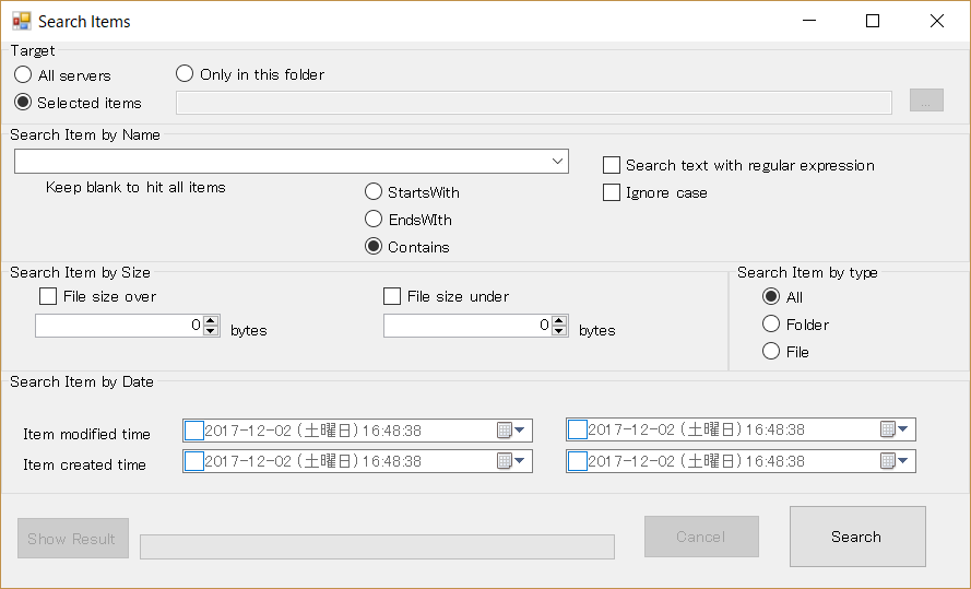 Both but Unmatch Filesには、両方に存在するがファイルサイズ(またはMD5ハッシュ)が異なるファイル