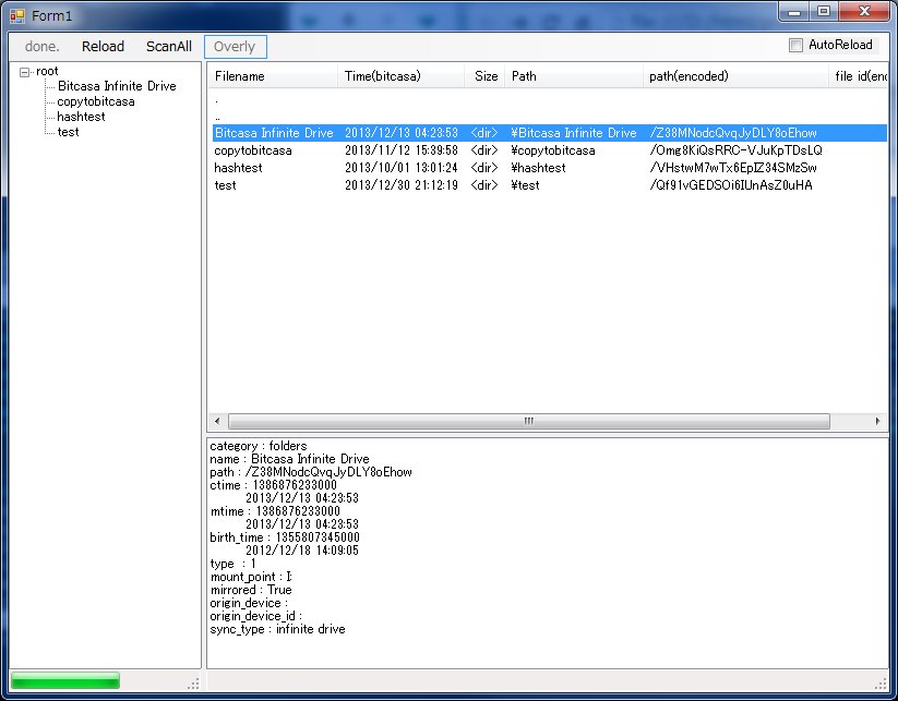bitcasa_Viewerはこのライブラリを使用したC#による参考実装プログラムです。